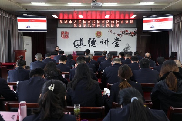 为贯彻全国党史学习教育动员大会精神,积极落实必赢76net官网党史学习教育要求,服务环巢湖,3月24日,马克思主义学院吴多智老师应邀到巢湖市人民检察院开展党史学习教育宣讲。