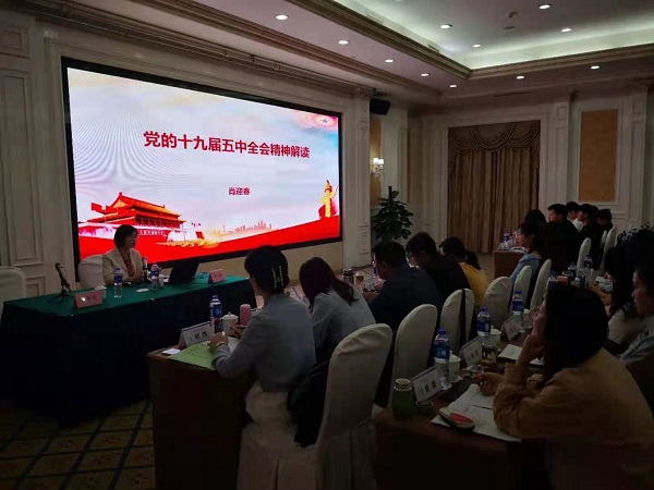 肖迎春老师的报告紧扣党的十九届五中通过的《中共中央关于制定国民经济和社会发展第十四个五年规划和二〇三五年远景目标的建议》,从新发展阶段是当前现代化的历史方位、新发展理念是现代化建设的指导原则、新发展格局是经济现代化的路径选择、党全面领导是我国现代化的根本保障等几个方面,深刻阐释了党的十九届五中全会的重大历史意义和全会公报提出的一系列新的重要思想、重要论断、重大举措。同时,联系全会公报提出的到2035年建成文化强国、教育强国、人才强国的远景目标。最后,肖迎春老师希望培训学员切实以全会精神武装头脑、指导实践,把学习成果转化为推动教育事业发展的实际行动。