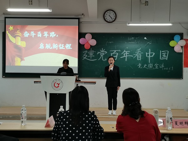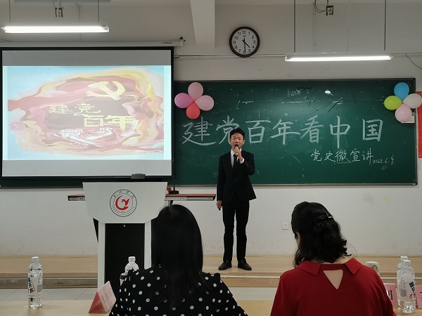 为喜迎中国共产党建党一百周年,扎实推进思想政治理论课教学改革创新,进一步提升《中国近现代史纲要》课教学效果,根据马克思主义学院工作安排,《中国近现代史纲要》课教研室开展“建党百年看中国”党史微宣讲比赛。此次比赛由学生社团知行学社承办。经过各班级层层选拔,最终遴选出13组选手参加决赛。