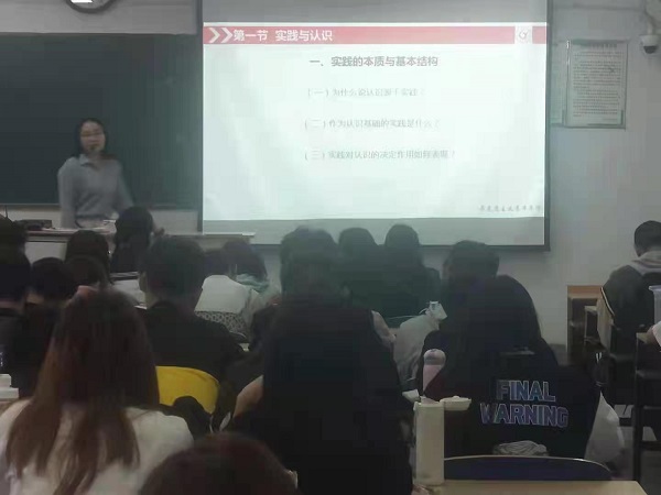 张秀娟老师此次公开课的主题为“实践的本质”。张秀娟老师在课前依托超星学习通智慧教学平台,发布马克思的著作《关于费尔巴哈的提纲》以及康德、黑格尔关于“实践”的相关原著并组织讨论,充分了解学生对“实践”的理解程度和存在的疑问。课上,针对学生的疑问,张秀娟老师从“二重分化”理论入手,解决了学生关于“为什么说认识来源于实践”的疑问;其次,通过分析《关于费尔巴哈的提纲》第一条,分别阐述了唯心主义和旧唯物主义实践观的缺点,接着引出并重点讲解了马克思主义科学的实践观;最后,借助机关“二传手”的工作和“愚公移山——沙石峪”两个典型案例,帮助学生厘清科学实践观,从而解决了学生关于“作为认识基础的实践是什么”的疑问。课后,张秀娟教师布置了相应的学习任务,强化学生对马克思主义科学实践观的理解,并开启新内容的学习。