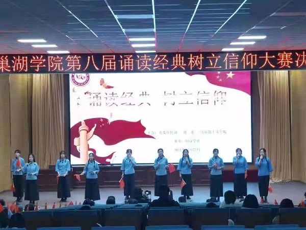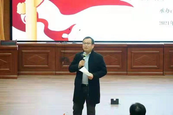 为庆祝中国共产党成立100周年,为贯彻落实习近平总书记在全国学校思政课教师座谈会上的重要讲话精神,进一步创新思政课教育教学,12月22日下午,马克思主义学院《原理》课教研室组织举办第八届大学生“诵读经典 树立信仰”经典朗诵大赛决赛。此次比赛由党委宣传部、校团委和马克思主义学院共同主办,学生社团知行学社承办。学工部部长周祥、宣传部副部长陈小波、团委副书记郭超、马克思主义学院副院长赵光军、副院长杨芳出席活动并担任评委。赵光军副院长致辞,近200名师生观看了比赛。