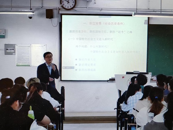 石庆海老师的授课主题是“习近平新时代中国特色社会主义思想创立背景”。他通过回顾党的十九大报告的相关论述,告诉同学们中国特色社会主义进入新时代,既是我国发展新的历史方位,也是我们新的“赶考之路”,从而自然导入本次授课主题。他从新的历史方位、新的理论要求、新的治理成就三个方面回答了什么叫新时代,中国特色社会主义是如何进入新时代的两个问题。在对这两个问题的解答中,逐步阐述清楚了中国特色社会主义进入新时代的社会历史条件,展现了石老师深厚的专业理论功底。