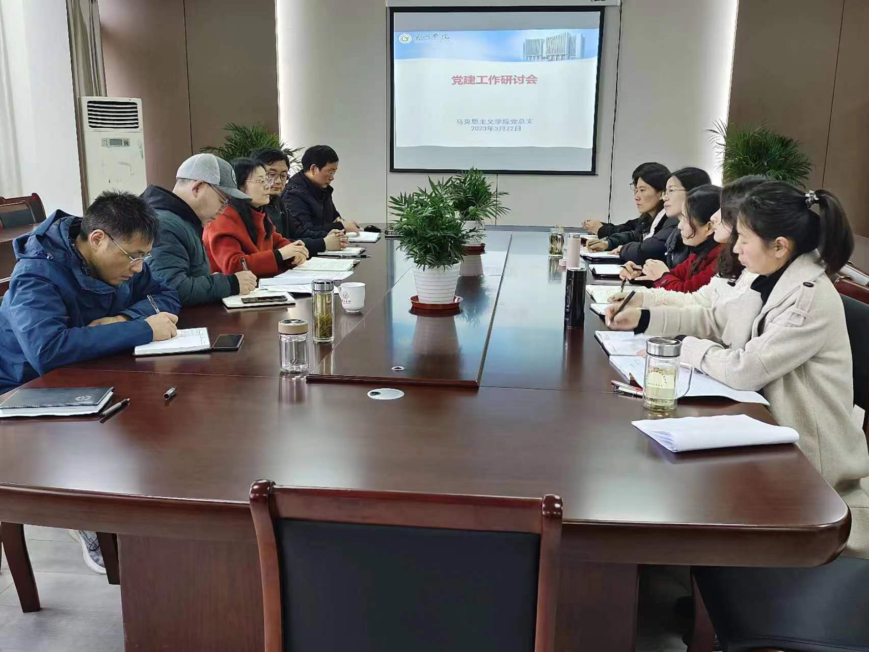 3月22日下午,马克思主义学院党总支在学院会议室召开党建工作会议,部署本学期党建重点工作。学院党总支委员、教工支部书记、教工支部委员参加会议。会议由学院党总支副书记杨芳主持。