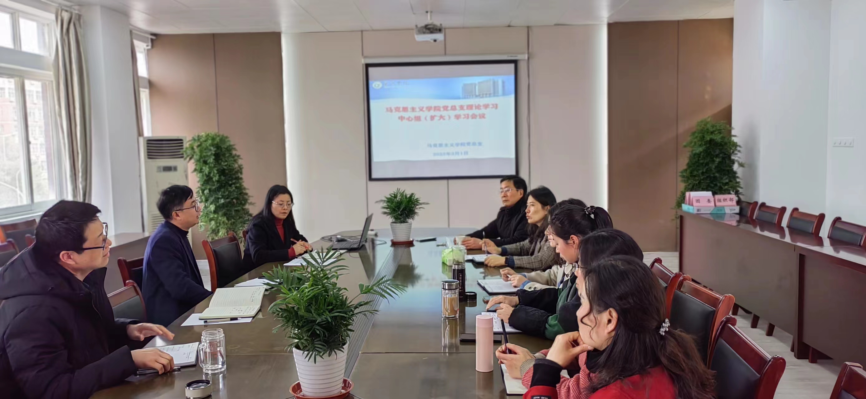 3月1日下午,马克思主义学院党总支在学院会议室召开理论学习中心组学习(扩大)会议。学院党总支副书记杨芳主持会议。学院党总支委员、教工支部书记、教工支部委员、科级干部、教研室主任参加会议。