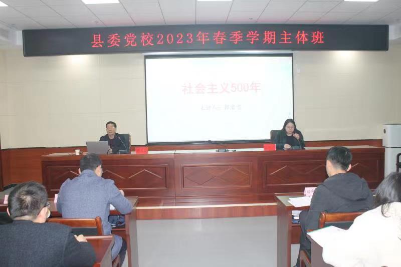 4月4日上午,马克思主义学院教工第二党支部书记、“形势与政策”教研室主任郭启贵老师应邀为含山县委党校春季学期主题班学员作题为《社会主义500年》的专题报告,含山县各党政机关60余名干部参加了报告会。