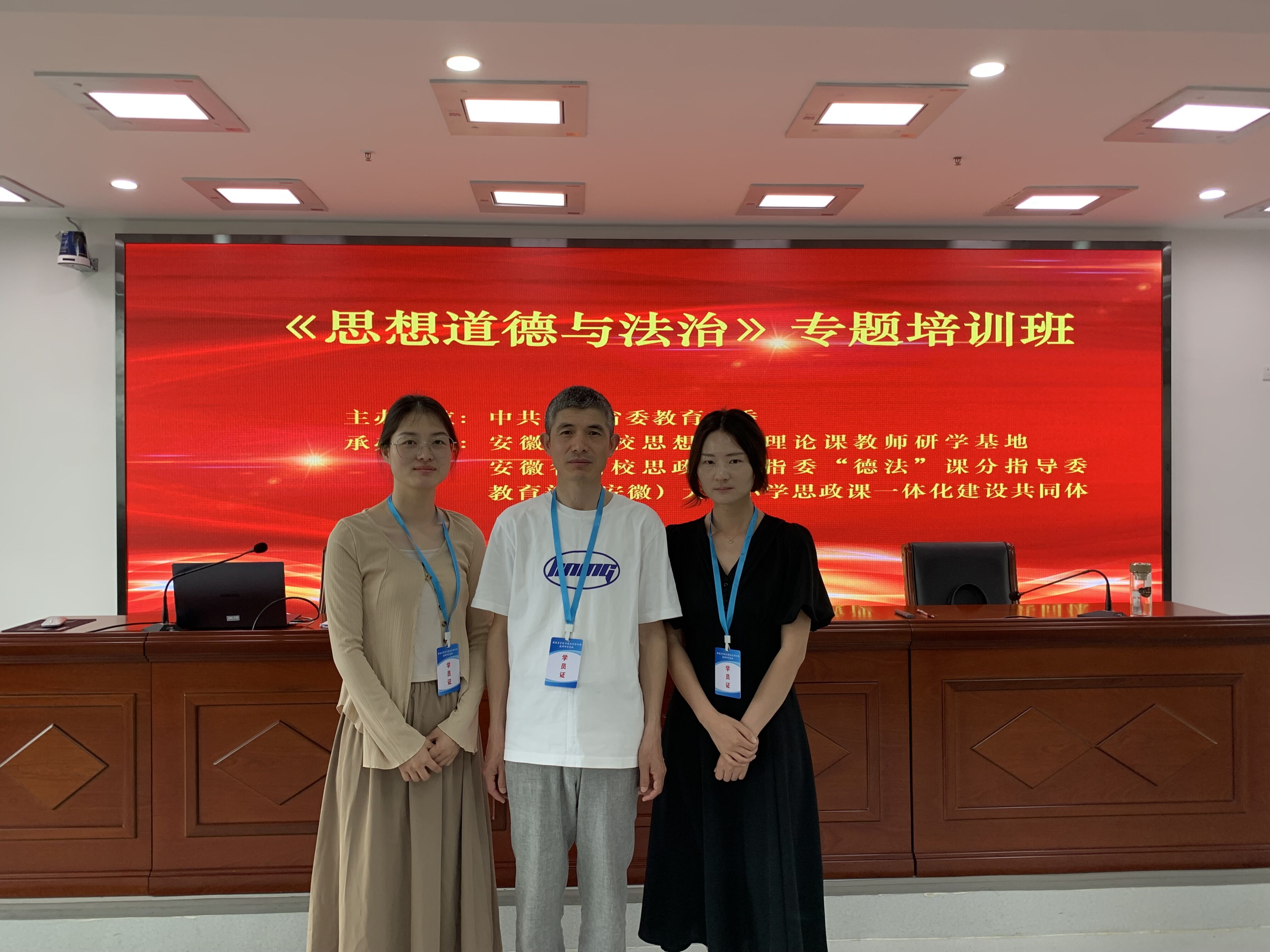 为推进“大思政”和大中小学思政课一体化建设工作,6月2日至6日,安徽省学校思想政治理论课教师研学培训《思想道德与法治》专题培训在绩溪举行。本次培训是由中共安徽省委教育工委主办,安徽省学校思想政治理论课教师研学基地(安徽财经大学)、安徽省高校思政课教指委“德法”课分指导委、教育部(安徽)大中小学思政课一体化建设共同体共同承办。马克思主义学院汪军、开琛、王静3位老师参加本次培训。