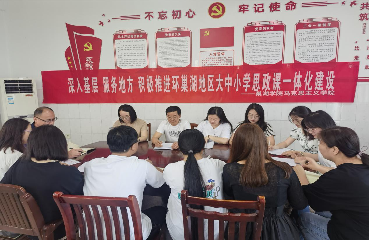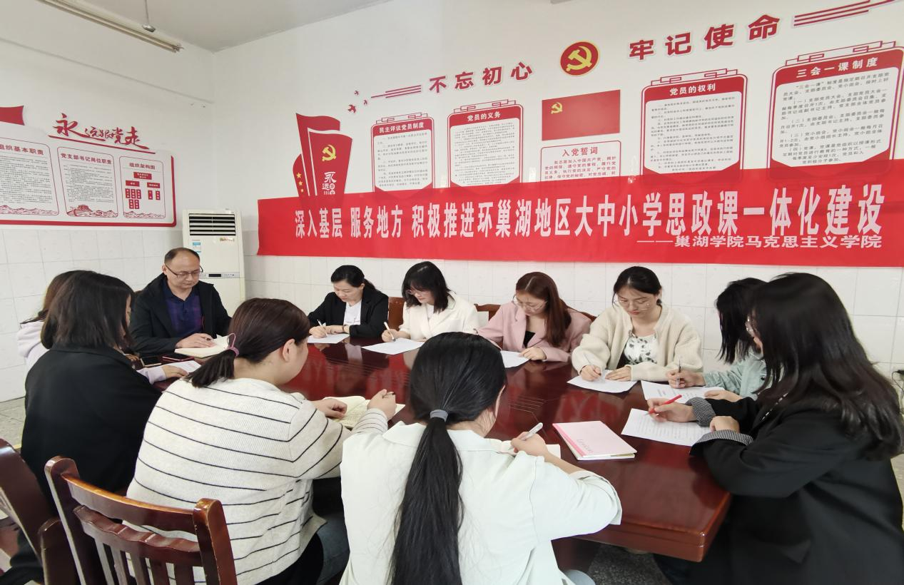 为深入推进环巢湖地区大中小学思政课一体化建设,马克思主义学院牢固树立“深入基层,服务地方”的意识,与巢湖市巢扬学校开展思政课共建,双方签订《全面提升巢扬学校办学水平》合作合同。自项目开展以来,项目组成员以项目建设为抓手,积极作为,群策群力,使得项目进展顺利,并取得丰硕成果。