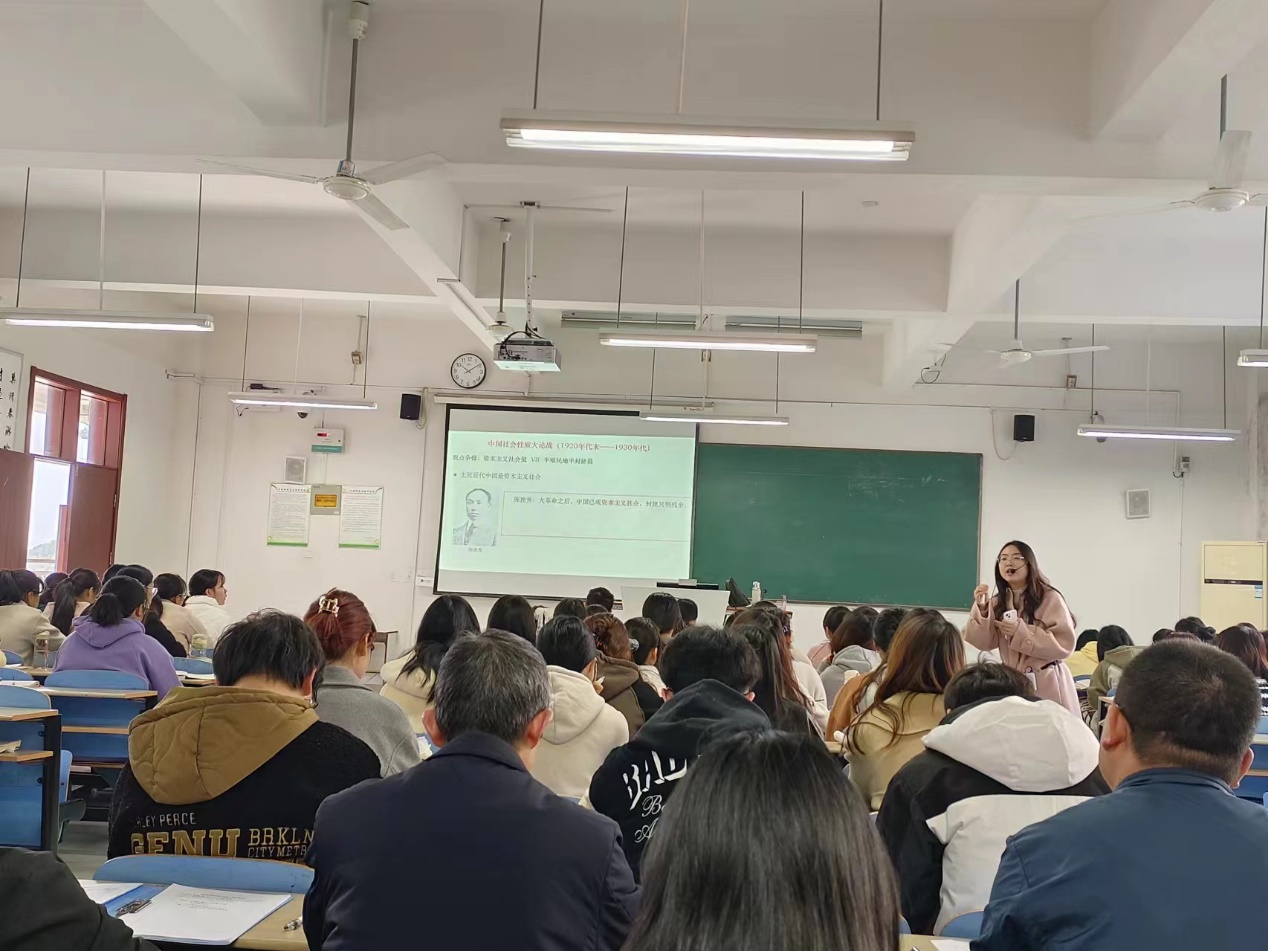 姚钰婷老师公开课主题为“新民主主义革命理论何以形成”,这一章节是“新民主主义革命理论”专题中的第一部分。姚老师在课程一开始以提问的方式带领学生们复习了“毛泽东思想活的灵魂”及“毛泽东思想的内容”等方面知识。之后,姚老师就新民主主义革命理论形成的国情依据进行了讲授,结合20世纪20年代末至30年代初关于中国社会性质的大讨论让同学们对中国近代半殖民地半封建社会的形成有了清晰的认识。她从近代中国的社会性质出发向同学们介绍了近代中国社会的主要矛盾及由此而来的革命的根本任务,循序渐进的引导同学们对新民主主义革命理论形成的认识逐步深入。整堂课教学思路清晰、组织严密,课堂氛围良好,学生积极参与课堂讨论,对课堂教授内容表现出了很高的兴趣和专注度。