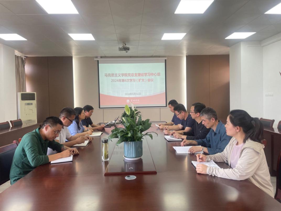 5月16日下午,马克思主义学院党总支在学院会议室召开理论学习中心组2024年第6次学习(扩大)会议。党总支副书记杨芳主持会议。学院党政领导班子成员、党总支委员、党支部书记、教研室主任、部分教师代表出席会议。
