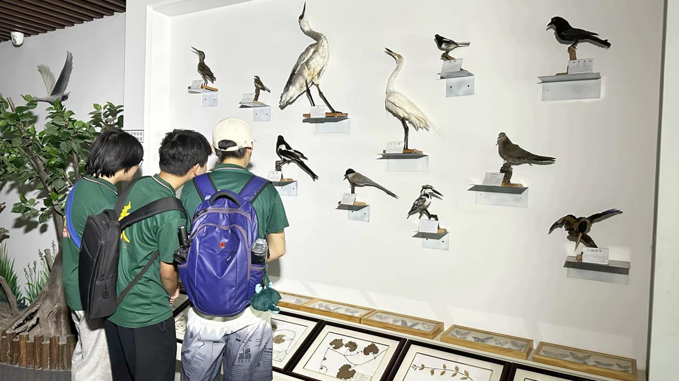 7月17日下午,实践团前往柘皋河自然教育中心,进一步展开调研。通过参观中心的湿地水鸟标本、阅读中心的湿地水鸟资料,实践团了解到柘皋河湿地水鸟的种类、分布、迁徙特点,以及水鸟观测与湿地保护及修复之间的关联性。这种实地参观的方式让实践团更加直观地感受到了改善湿地生态环境网,践行绿色发展理念的必要性与价值。
