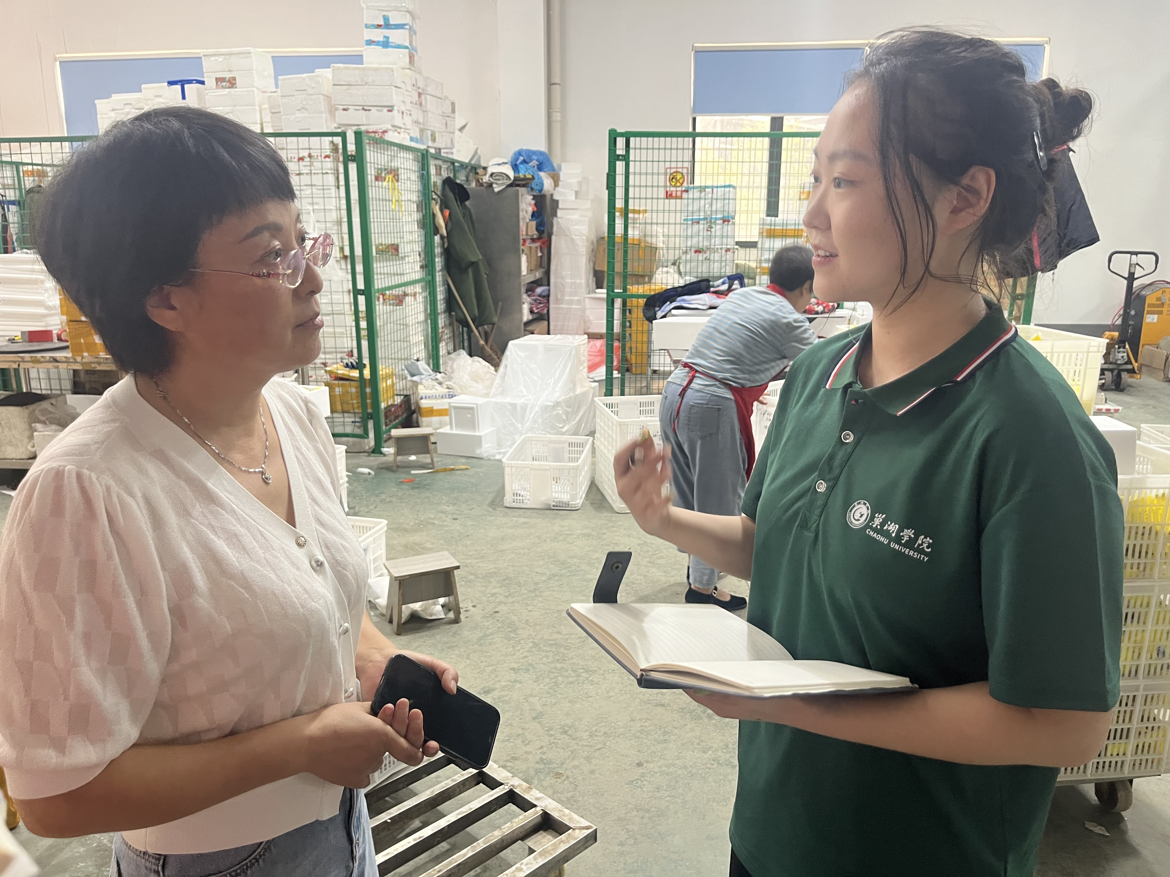 离开徽都徽菜食品有限公司后,调研团队前往安徽凡农农业科技有限公司,在公司行政负责人姜红敏带领下,参观了解了现代电商企业选品、包装、销售等运营过程,姜红敏还向实践团成员分享了公司的经营理念,“凡农始终秉持诚信为本、用心服务、合作创新,客户至上的理念,做一家坚持向上向善的企业,充分结合本地农产品资源优势,通过淘宝直播等带货的方式,来帮助当地解决农产品销路问题。”诚信为本的经营理念,扎根家乡的故乡情感无一不彰显新徽商对徽商精神的坚守与传承。