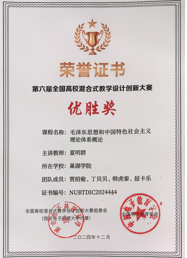 夏明群老师团队在第六届全国高校混合式教学设计创新大赛获优胜奖