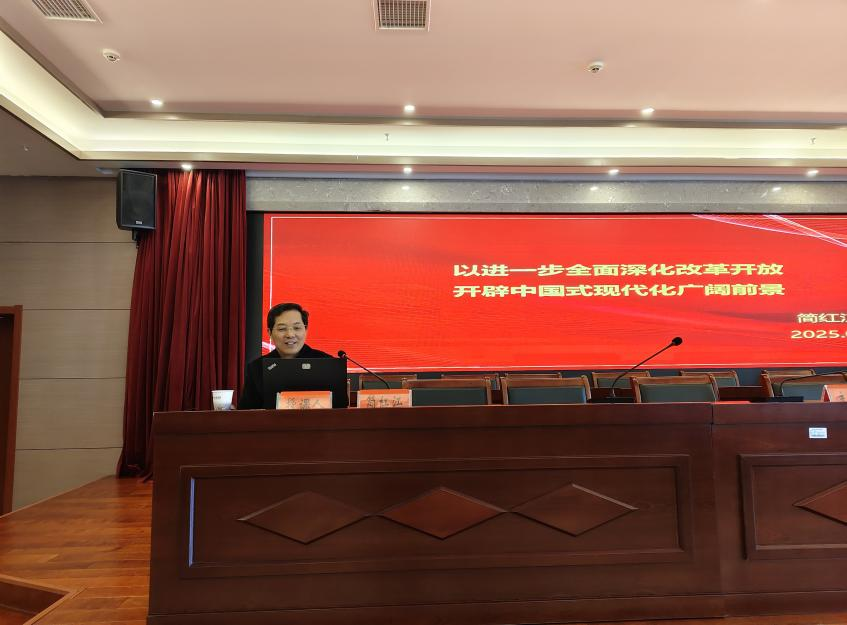 2025年3月6日,马克思主义学院简红江教授受邀为三河镇2025年度农村党员春训授课,解读党的二十届三中全会精神,讲授主题为“以进一步全面深化改革开放 开辟中国式现代化广阔前景”。