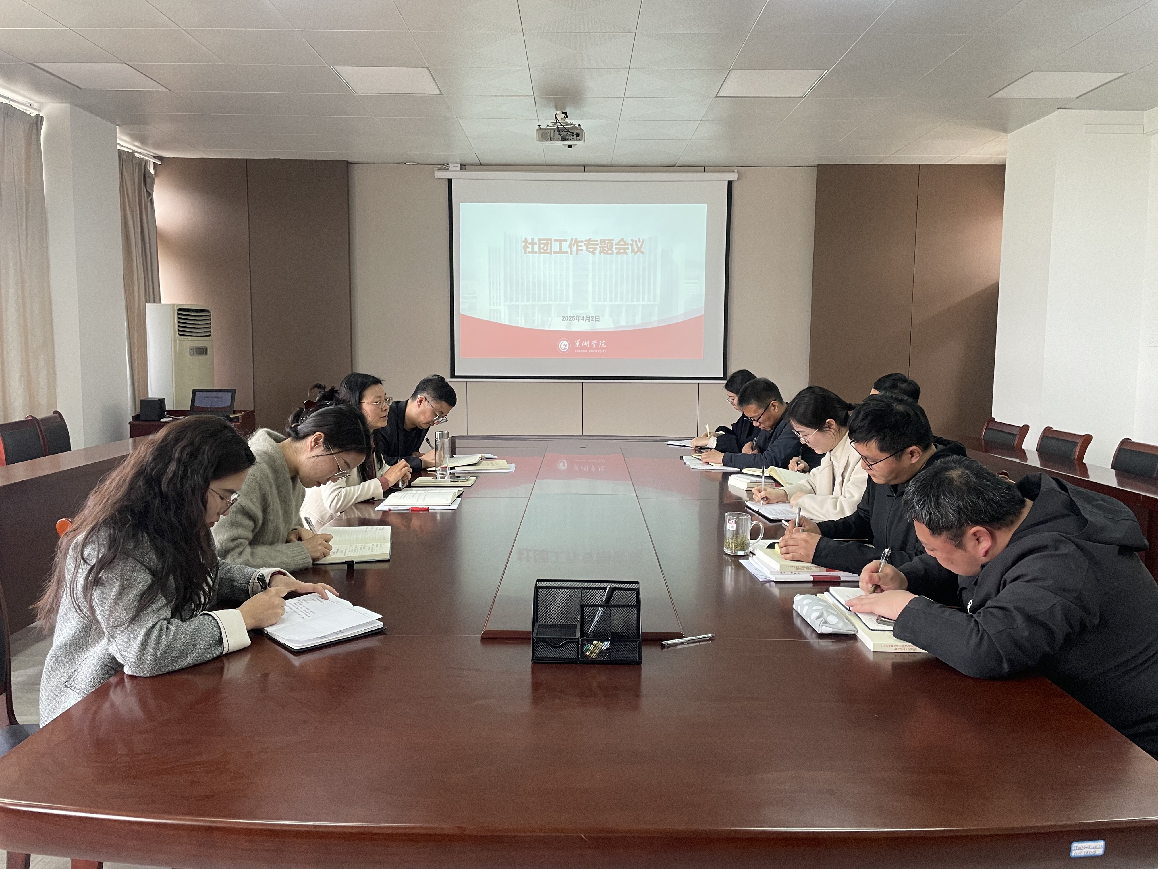 为了进一步提升社团管理水平,强化思政育人实效,2025年4月2日,马克思主义学院在艺术楼三楼会议室召开社团工作专题会议。本次会议由学院党总支书记杨芳主持,副院长石庆海、四个社团的指导教师以及各教工支部书记参加会议。