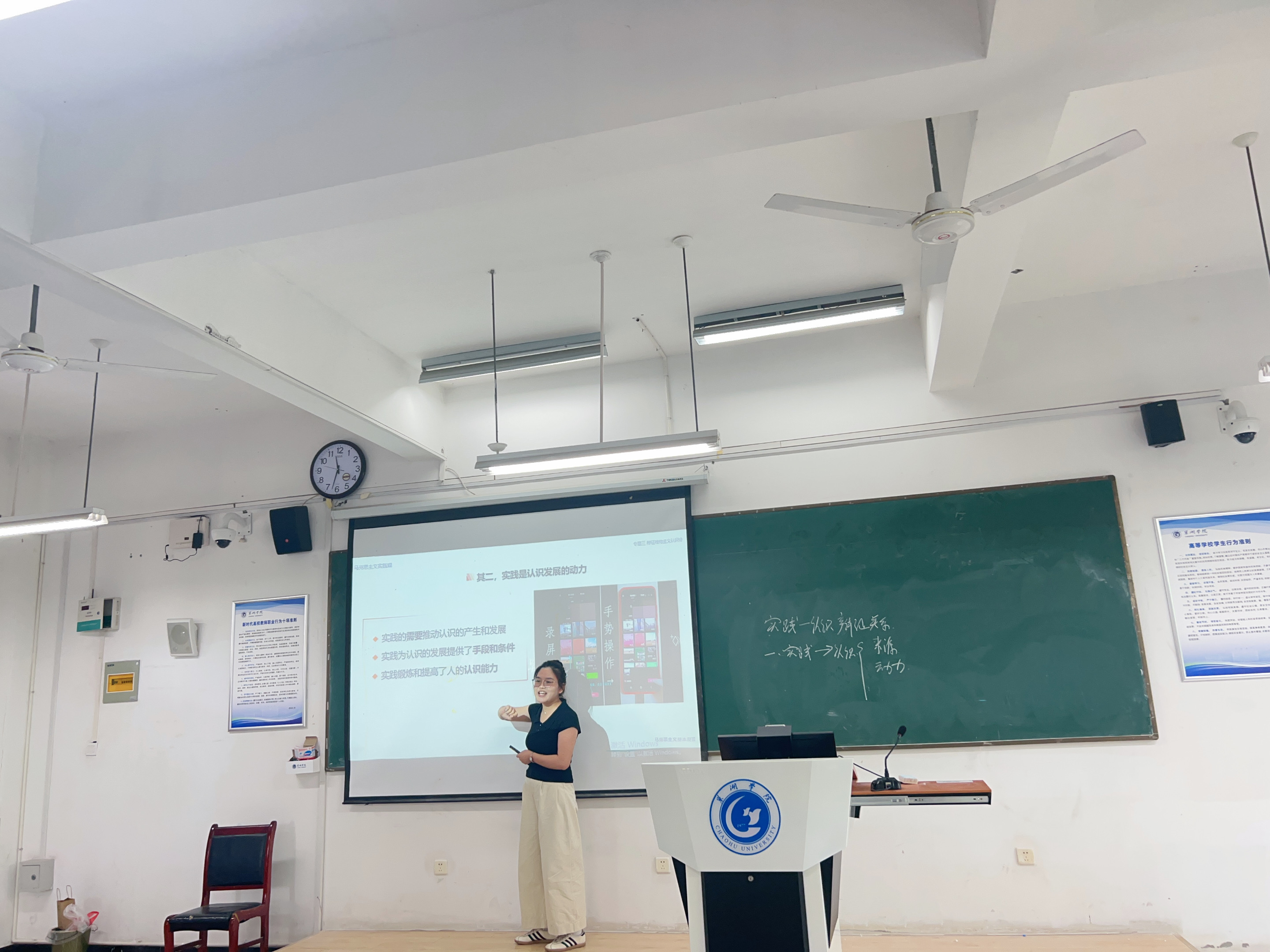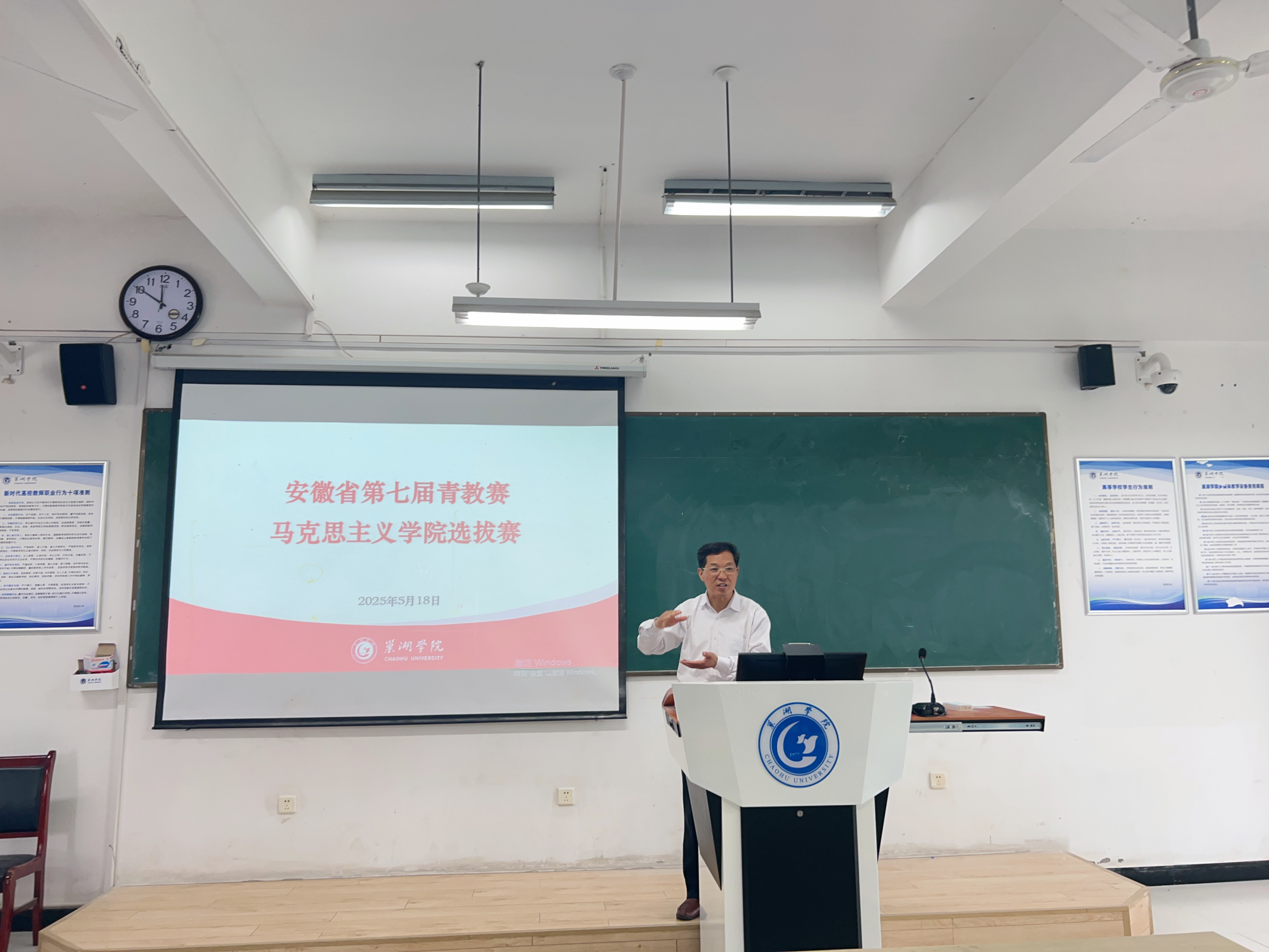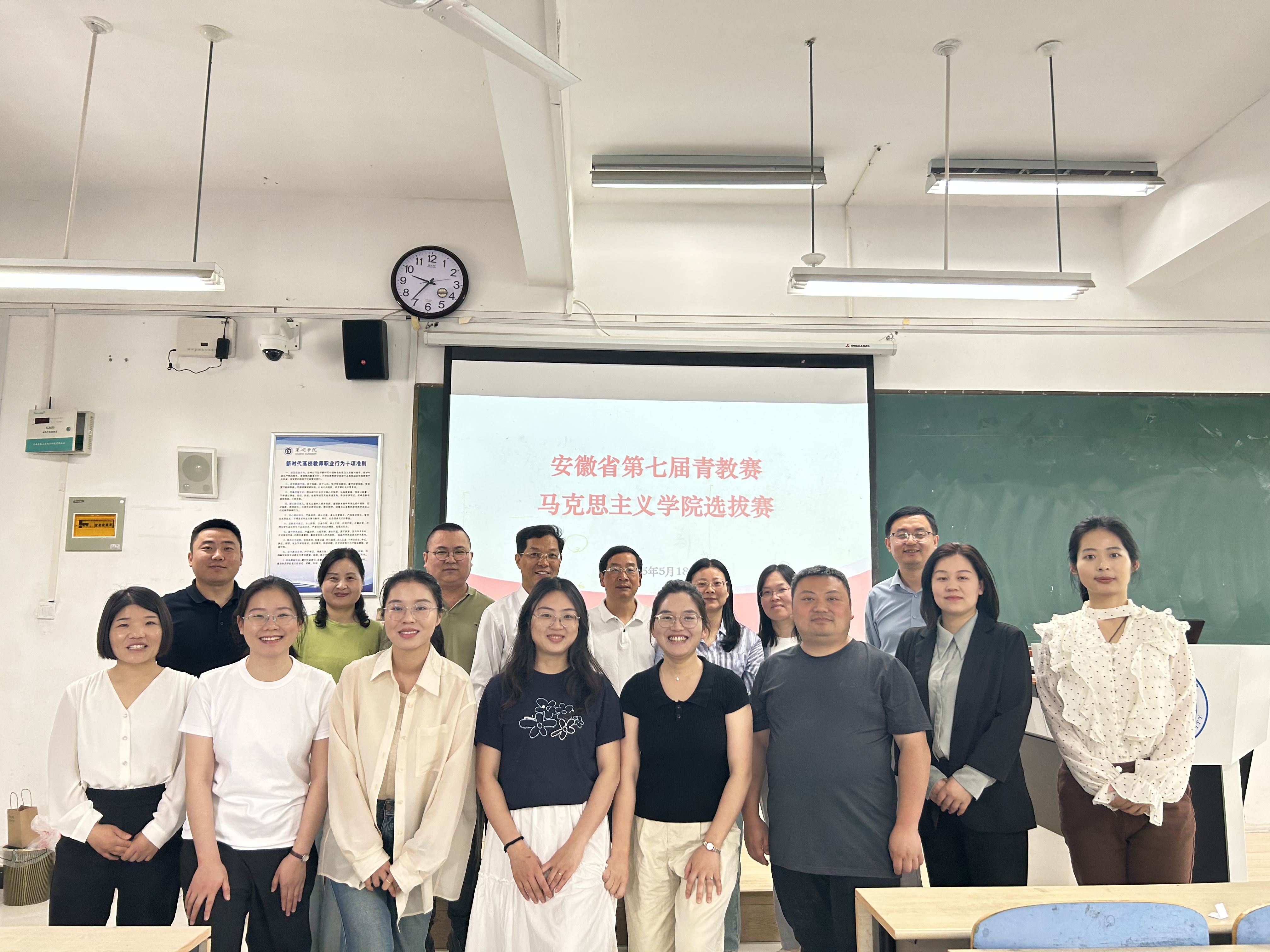 为落实立德树人根本任务,提升青年教师教学能力,马克思主义学院于2025年5月18日上午在慎思楼北101教室举办安徽省第七届高校青年教师教学竞赛院级选拔赛。吴卿、张智慧、金辉、徐二花、廖梦琦、姚钰婷、宋玉荃、丁贝贝、付加佳等青年教师同台竞技,党总支书记杨芳、副院长石庆海以及简红江、郭启贵、王红丽、过慈明、韩虎泰等历任和现任督导担任比赛评委,学院骨干教师和青年教师现场观摩。