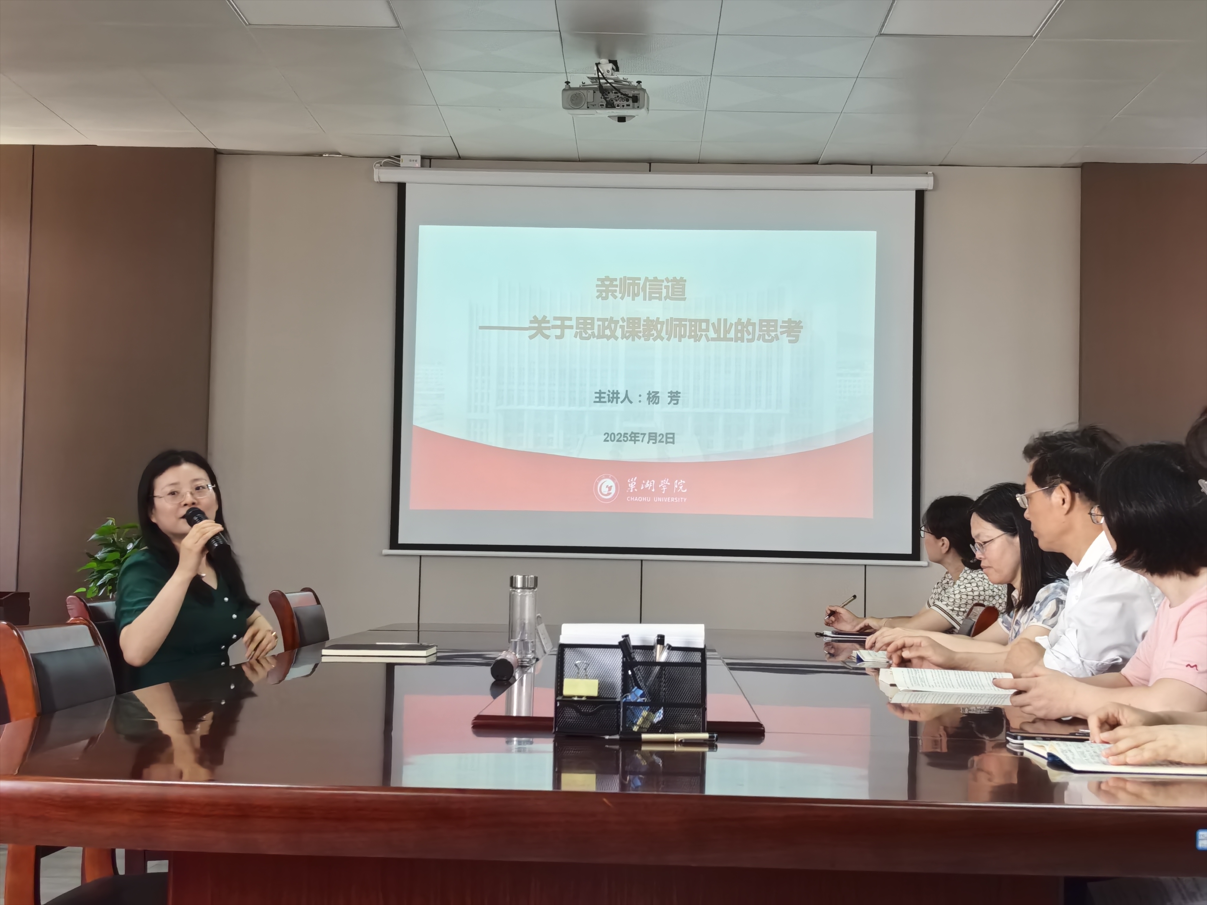 马克思主义学院党总支书记杨芳在《亲师信道——关于思政课教师职业的思考》专题报告中强调,思政课教师不仅要做“经师”,更要做“人师”,要常怀“敬畏”之心,敬畏教师职业,敬畏三尺讲台;要常怀“进取”之心,练就扎实本领,克服本领恐慌;要常怀“变革”之心,创新教育形式,提升教育效果;要常怀“育人”之心,坚持立德树人,促进全面发展;要常怀“感恩”之心,坚持团结协作,不忘砥砺前行。以坚定的信仰感染学生,以深厚的学理说服学生,以高尚的人格引领学生,真正成为学生成长路上的引路人。