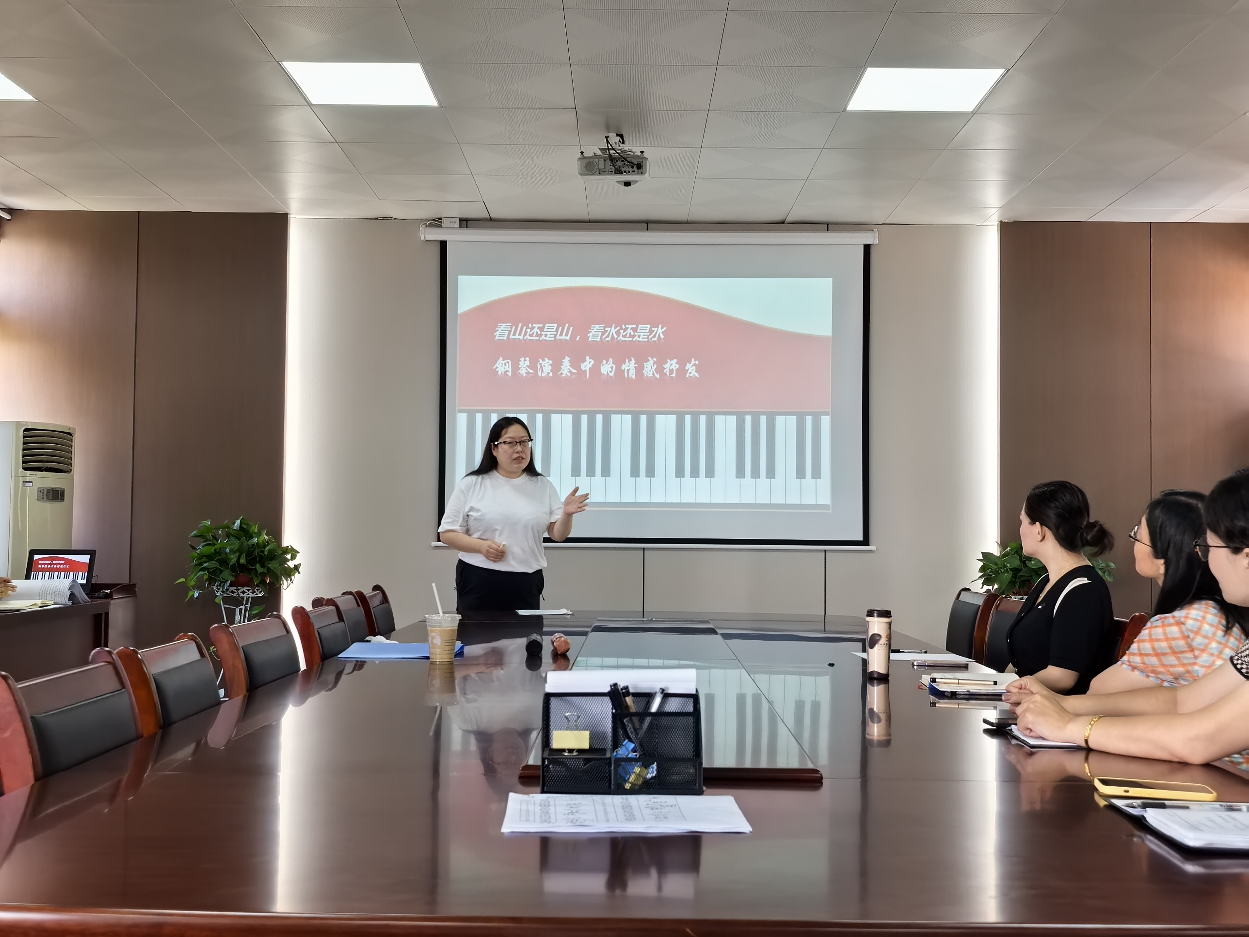 学院还特别邀请安徽省第六届青教赛文科组一等奖获得者郭华老师进行现场示范教学。郭华以《看山还是山,看水还是水——钢琴演奏中的情感抒发》为题,生动展示如何将艺术案例融入思政教学,激发学生情感共鸣。她结合自身参赛经验,从选题设计、学情分析、课堂互动等方面与青年教师深入交流,为提升思政课教学艺术提供了宝贵借鉴。