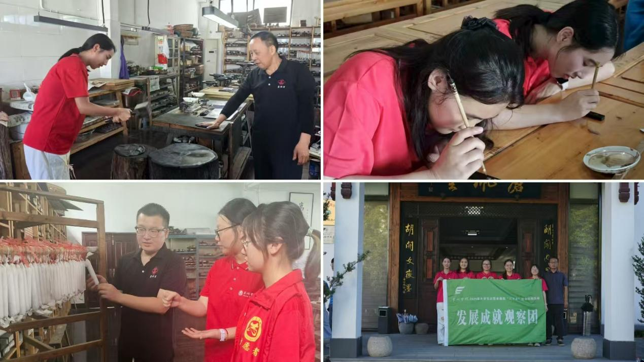 从博物馆的文物陈列到文庙宗祠的匠心雕刻,从徽菜选材纯朴而用心到徽州人民崇学又重商,绩溪文化在历史遗存中静静流淌。然而,绩溪文化的厚重不仅如此,当队员们来到徽墨文化园现场沉浸感受非遗传承的时候,当队员们来到华阳镇周边古村落的时候,共同见证了这份文脉正以更鲜活的方式拓展延续。走进中国徽墨文化园,队员们深入探访徽墨制作奥秘,亲手体验“捶打墨坯”与“描金绘彩”的核心技艺,以“探源+体验”“对话+弘扬”“践行+担当”为主线开启了一场沉浸式的非遗研学之旅。捶打间,队员们领悟“千锤百炼出精品”的真谛,感受力道与节奏的平衡对墨锭“落纸如漆”品质的决定性作用;描金时,从生涩到专注,一笔一画体会传统工艺对“精细”的极致追求,触摸工匠精神的具象化。通过体验式参与,深入理解非遗传承的重大意义,通过对话式学习,深度解码徽墨背后精益求精的精神内核。队员们感慨:在徽墨韵香中探寻绩溪底色,在非遗传承中弘扬工匠精神,一次特殊的体验强化了对绩溪的美好印象,而这恰恰又是绩溪城乡文旅融合发展中应该浓墨重彩的一笔。