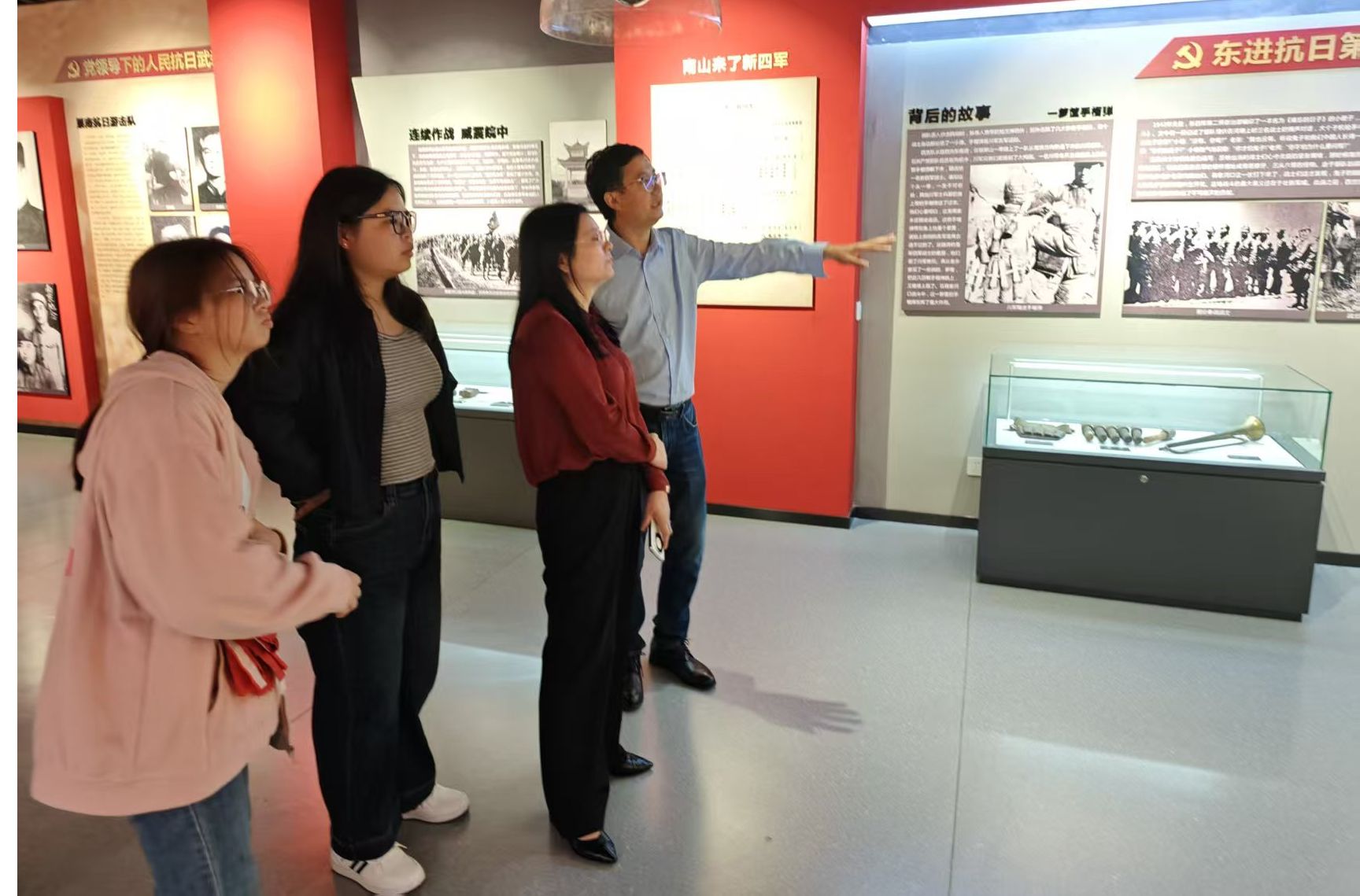 馆内陈列着泛黄的书信、斑驳的武器、珍贵的历史文献,配合场景复原与影像资料,真实再现了新四军将士在蒋家河口战斗中以少胜多、英勇奋战的壮烈场景。讲解员动情讲述“无名战士舍身炸碉堡”“村民冒死送情报”等感人故事,深深打动了在场师生,也将大家的思绪带回到那段烽火连天却信念如磐的岁月。