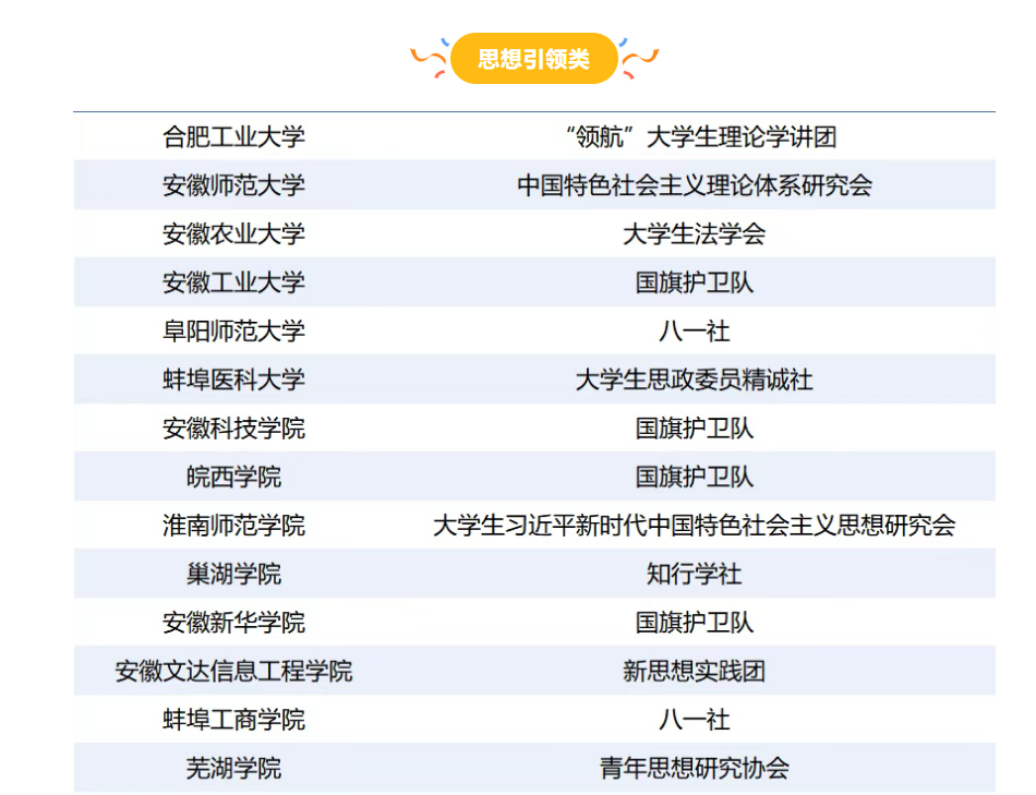 本次活动由共青团安徽省委、安徽省学生联合会联合主办,旨在深入贯彻落实习近平总书记关于青年工作的重要思想及考察安徽重要讲话精神,进一步激发高校学生社团活力,强化社团育人功能,全面提升全省高校社团建设与管理水平。活动采取线上展示形式,参评社团需围绕思想引领、学术科技等五大领域,精准定位并系统呈现育人成效与创新实践,竞争激烈、评选严格。