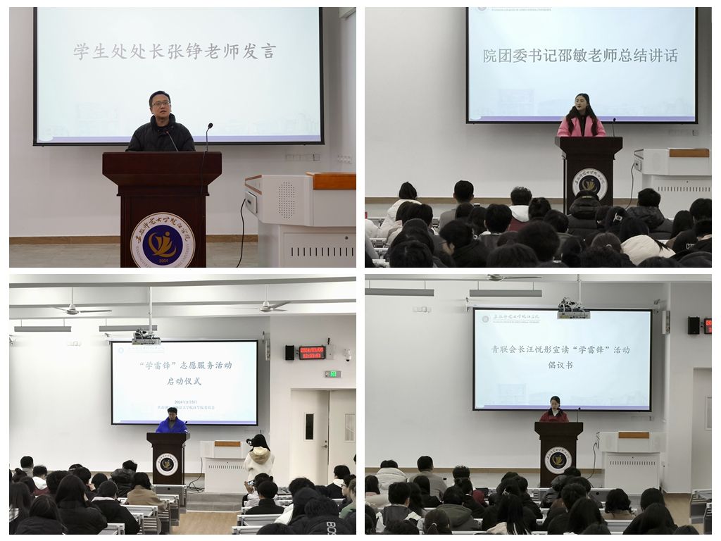 会上,团委素质拓展中心主任项名翠宣读“学雷锋志愿服务月”活动方案,介绍了近期各系部申报的学雷锋活动情况,提出所有活动组织应结合专业特色,将学雷锋活动常态化、项目化、专业化、品牌化。青年志愿者联合会会长汪悦彤作为志愿者代表宣读“学雷锋”活动倡议书,她对全院师生发出“学思贯通把握雷锋精神的时代内涵、知行合一投身雷锋精神的生动实践、踔厉奋发做好新时代‘钉子精神’的青年诠释”的号召。