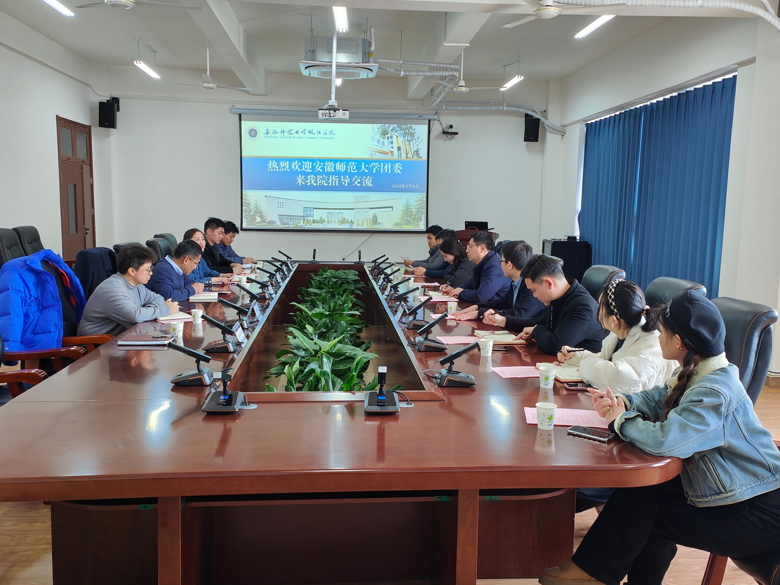 3月8日上午,安徽师范大学团委书记廖仲明一行深入学院江北校区调研指导工作,并召开工作座谈会。院党委副书记、纪委书记、副院长左方敏,院团委书记邵敏陪同调研。