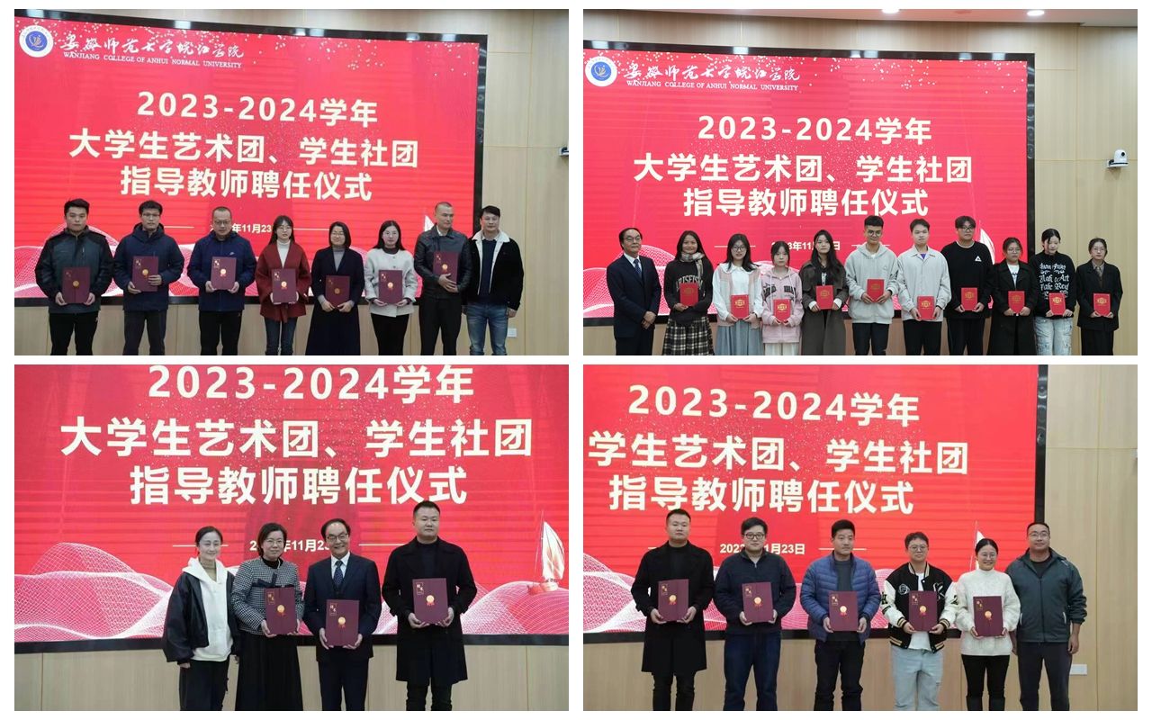 本次大学生艺术团、学生社团指导老师聘任仪式暨十佳社团颁奖仪式的举办,体现了学院对大学生艺术团、学生社团发展的关心与重视。大学生艺术团和学生社团建设不断完善,既丰富了第二课堂活动形式,也体现学院立德树人的教育理念,通过开展各项校园文化活动为学生实践锻炼提供了广阔舞台,助力皖江学子的全面发展。