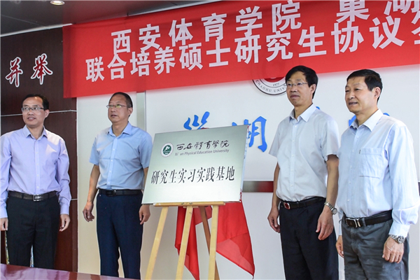 仪式上,祝家贵和刘新民签署了两校联合培养硕士研究生协议,并共同为“西安体育学院研究生实习实践基地”揭牌。刘新民向体育学院姚磊教授、赵胜国教授颁发了西安体育学院硕士研究生导师聘书。