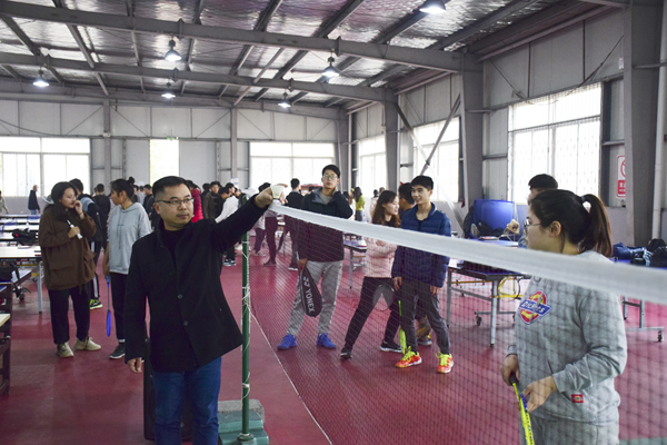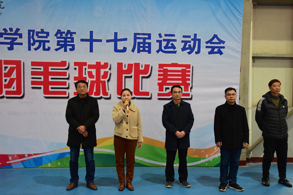 12月16日下午四时,必赢76net官网第十七届运动会羽毛球赛开幕式在风雨操场举行。校团委书记郑玲、电子工程学院党委书记陈海波、艺术学院党委书记王光富、体育学院党总支书记芮德武、羽毛球比赛裁判长蒋圣祥出席开幕式,开幕式由体育学院李靖主持。