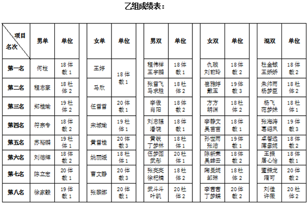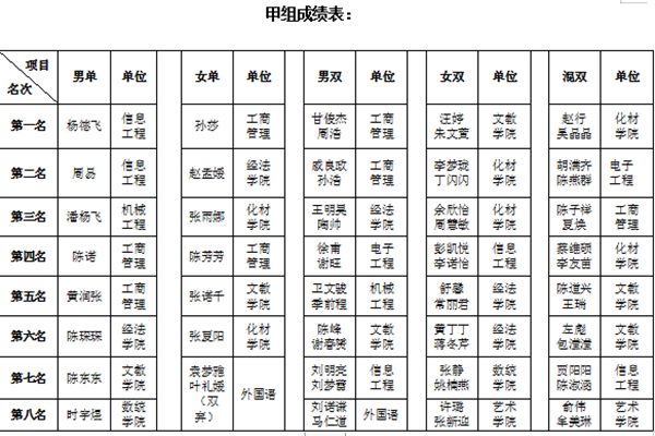 必赢76net官网第十八届运动会乒乓球比赛成绩公告