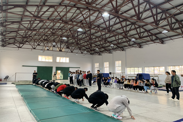 针对第一阶段的集体备课、教案研讨,11月18日,下午2点,全体教研室成员于体操房对体操课程后滚翻教学内容的实践教学进行现场观摩。并对实际教学中课程思政育人、“OBE”理念落实情况进行交流、讨论。