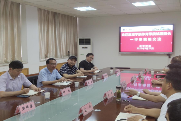 5月27日下午,体育学院院长姚磊、副院长赵胜国等一行五人到安徽师范大学体育学院就联合培养研究生、运动训练专业建设等相关工作,开展调研和交流。安徽师范大学体育学院书记黄德春、院长金涛、副院长高升、岳建军等七位老师出席会议,会议由金涛院长主持。