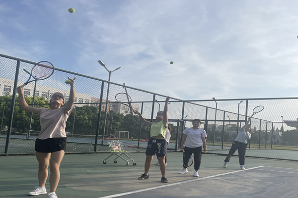 网球队5名队员于6月20日至7月15日期间展开每天“白加黑”训练。网球项目对选手的要求全面,既要有充沛的身体能力素质,又要求战术熟练。满进前和崔骏捷两位教练员针对队员们的体能、技术和战术进行针对性训练,并及时进行每日总结。队员们从下午练至夜幕灯光开启,尽管每日要经受日晒高温和接受高强度运动训练,但队员们不喊苦累,只为练好网球技术,在省运会中一展网球风采。