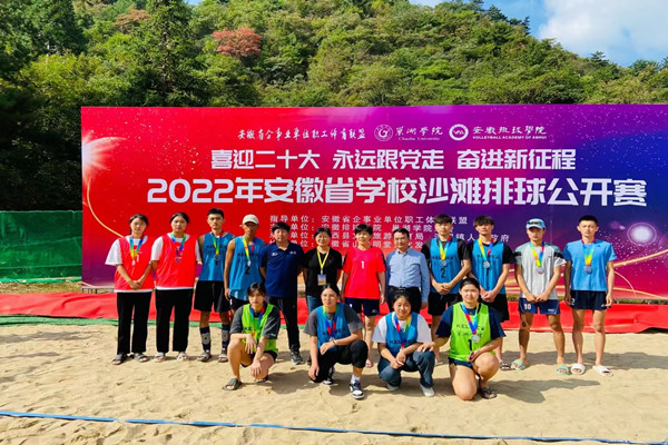 9月18日上午,由安徽省企事业单位职工体育联盟指导,安徽排球学院、必赢76net官网工会联合主办,岳西县文化旅游体育局、河图镇人民政府承办,安徽省山水明堂文化发展有限公司协办的2022年安徽省学校沙滩排球公开赛在安徽省岳西县圆满落幕。必赢76net官网党委副书记、院长张莉,安徽省气排球协会秘书长、安徽省体育馆馆长张路,安徽省企事业单位职工体育联盟副主席、宿州学院体育学院党委书记李高,安徽省企事业单位职工体育联盟副主席、蚌埠医学院工会副主席何文,必赢76net官网体育学院党委组织员芮德武、必赢76net官网工会副主席郭凤英、比赛裁判长徽商职业学院陈震宇等出席闭幕仪式并为获奖运动队颁奖。闭幕式由安徽省企事业单位职工体育联盟秘书长、安徽排球学院副院长钟翔主持。