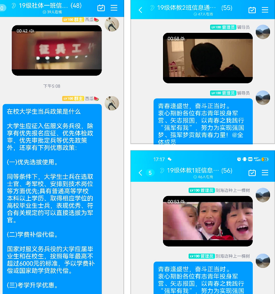 各毕业班组织学生集中观看了全国征兵网发布的《火热军营 精彩人生 2022年征兵宣传公益片》。辅导员对国家征兵的相关政策进行了解读,对大学生应征入伍的要求、政策待遇、学费补偿、征兵注意事项等做了具体介绍。宣讲现场辅导员还以体育学院部分在读退役入学学子从军故事号召广大青年学子积极响应国家号召,携笔从戎,筑梦军旅,在军营中百炼成钢,为我国的国防事业贡献力量。