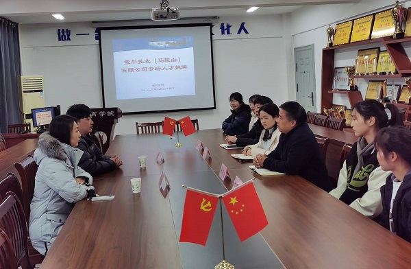 2月24日中午,体育学院在学院会议室举行蒙牛乳业(马鞍山)有限公司专场人才招聘会。蒙牛乳业(马鞍山)有限公司工会主席李佳佳、团委书记梁洪恺,体育学院党委副书记宋明友、朱春花,副院长钟翔以及应聘毕业生参会,招聘会由毕业班辅导员张巧生主持。