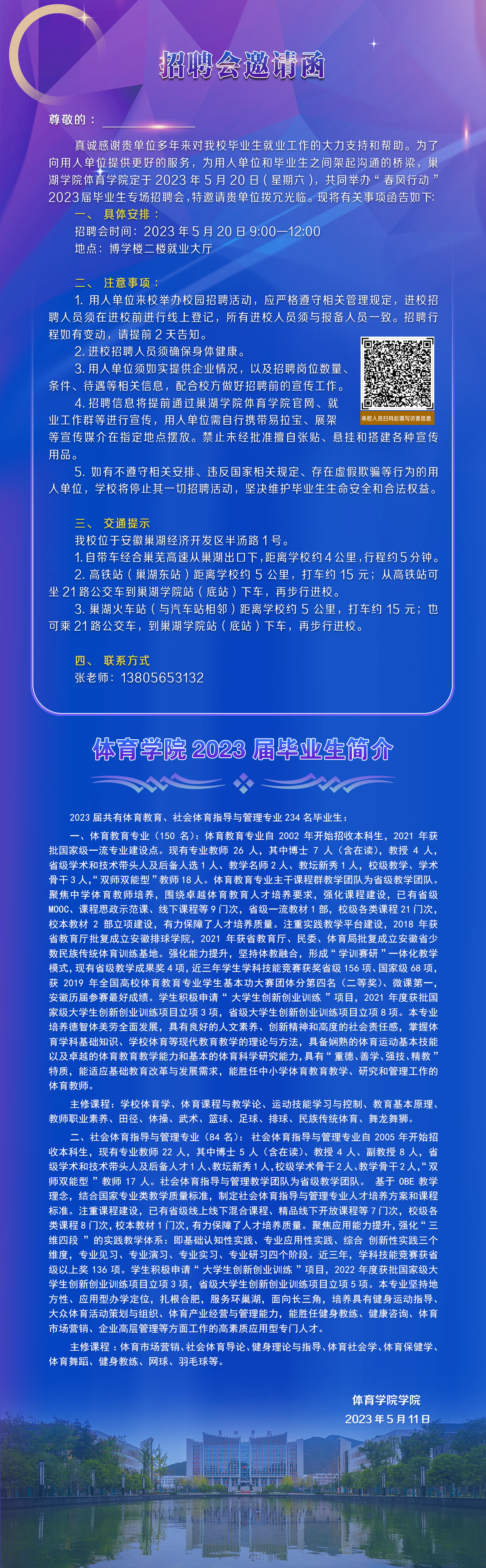 “体育英才 职等未来”必赢76net官网体育学院2023届毕业生招聘会邀请函