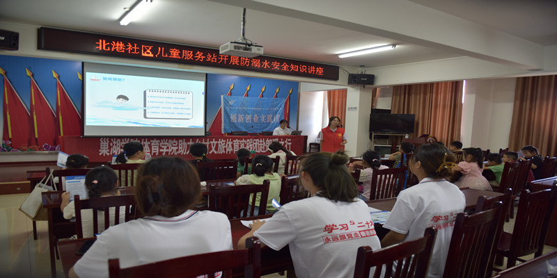 党的十八大以来,习近平总书记就加强自然灾害防治、抓好防汛救灾、加强应急管理等方面作出一系列重要论述和重要指示。随着全国各地气温逐渐上升,溺水又将进入高发季。为切实加强青少年及家长的防溺水安全意识,八月,实践团前往郎溪县北港社区,主要围绕易溺水区域、预防溺水有效措施、溺水施救方法、家长如何教育孩子预防溺水等四个方面开展防溺水安全知识主题宣讲。团队运用生动形象的演示深化小朋友们对防溺水知识的理解,同时现场发放了预防溺水安全知识须知宣传册。宣讲结束后,成员们还为小朋友们科普了一些简单有效的体育锻炼方法,让孩子们掌握科学安全的运动方法,提高免疫力。