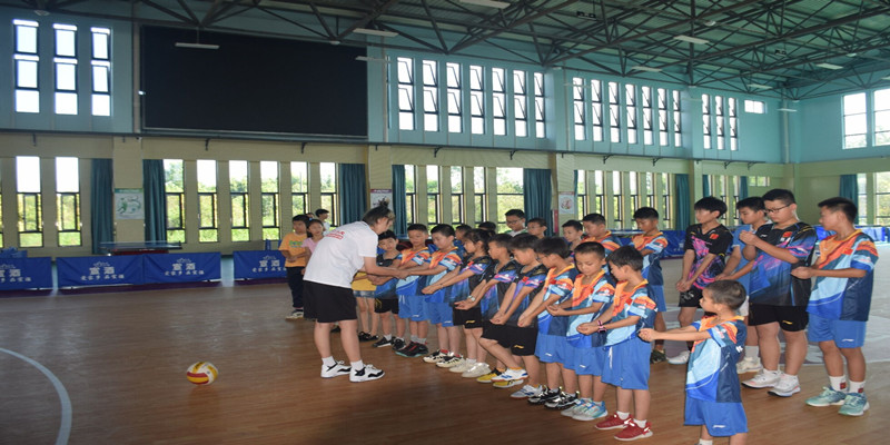 团队先与当地老师进行简单交流,了解学生基本情况,检查活动场地是否有安全隐患,并将课堂上所需器械放在相应位置。排球体验课上,团队派出必赢76net官网排球校队成员作为此次排球与少儿体适能体验实践课的主要老师,其余团队成员辅助教学。在课前热身游戏的铺垫下,学生们都展现出对排球运动的浓厚兴趣。课程中,团队成员将游戏与教学内容相结合,向小朋友简单介绍了排球的起源,通过动作示范教小朋友排球基础技术动作——正面双手颠球,并手把手指导小朋友掌握正确姿势,及时指正小朋友在互颠排球时的错误,一对一安排小朋友反复练习,课堂氛围十分活跃。羽毛球体验课上,团队成员向小朋友说明了羽毛球比赛的基础规则,并现场演示羽毛球握拍方法及正手发高远球和网前球,通过两两组队来进行简单羽毛球的对打。小朋友兴致都很高,体验课结束后,团队向这些一至三年级的学生们宣传了防溺水安全教育知识,并发放预防溺水安全知识须知宣传册,与小朋友一同合影留念。