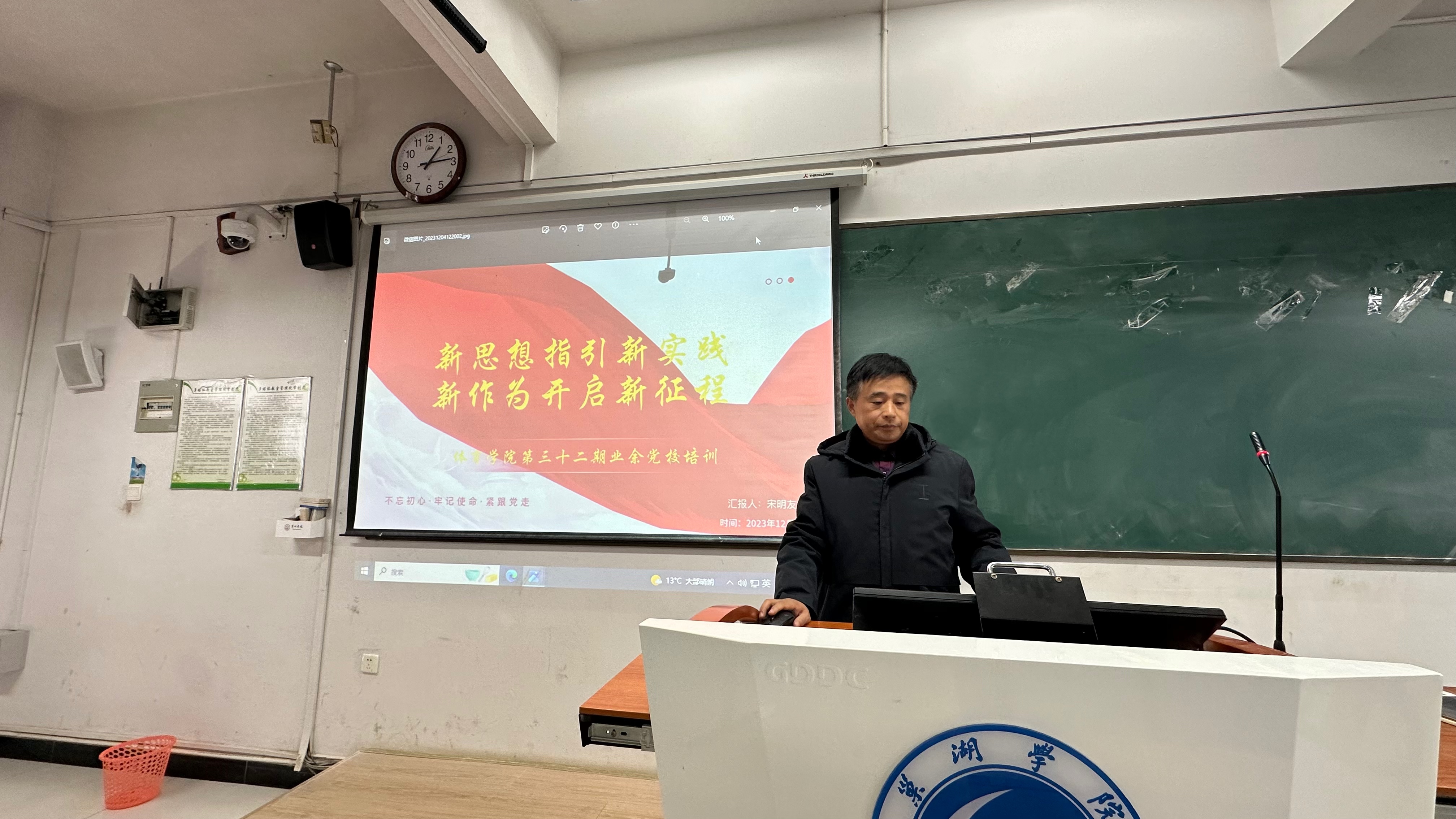 为全面深入开展学习贯彻习近平新时代中国特色社会主义思想主题教育,12月4日中午,体育学院党委书记宋明友在慎思楼中102教室为体育学院第32期党课培训学员上了一堂“新思想指引新实践,新作为开启新征程”的专题党课。学院第32期党课培训学员和发展对象积极响应号召,全员参加,学习新思想、坚定跟党走、建功新时代。