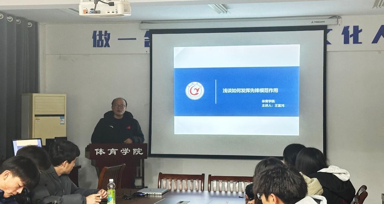 为深入学习贯彻党的二十大精神,充分发挥党校培养教育党员的主阵地作用,12月12日,体育学院在学院会议室进行第32期入党积极分子培训班暨党课第8讲。由学院教工第三支部书记王富鸿为入党积极分子们上了一堂“谈谈如何发挥先锋作用”的互动党课。第三十二期入党积极分子培训班全体学员参加本次党课培训。