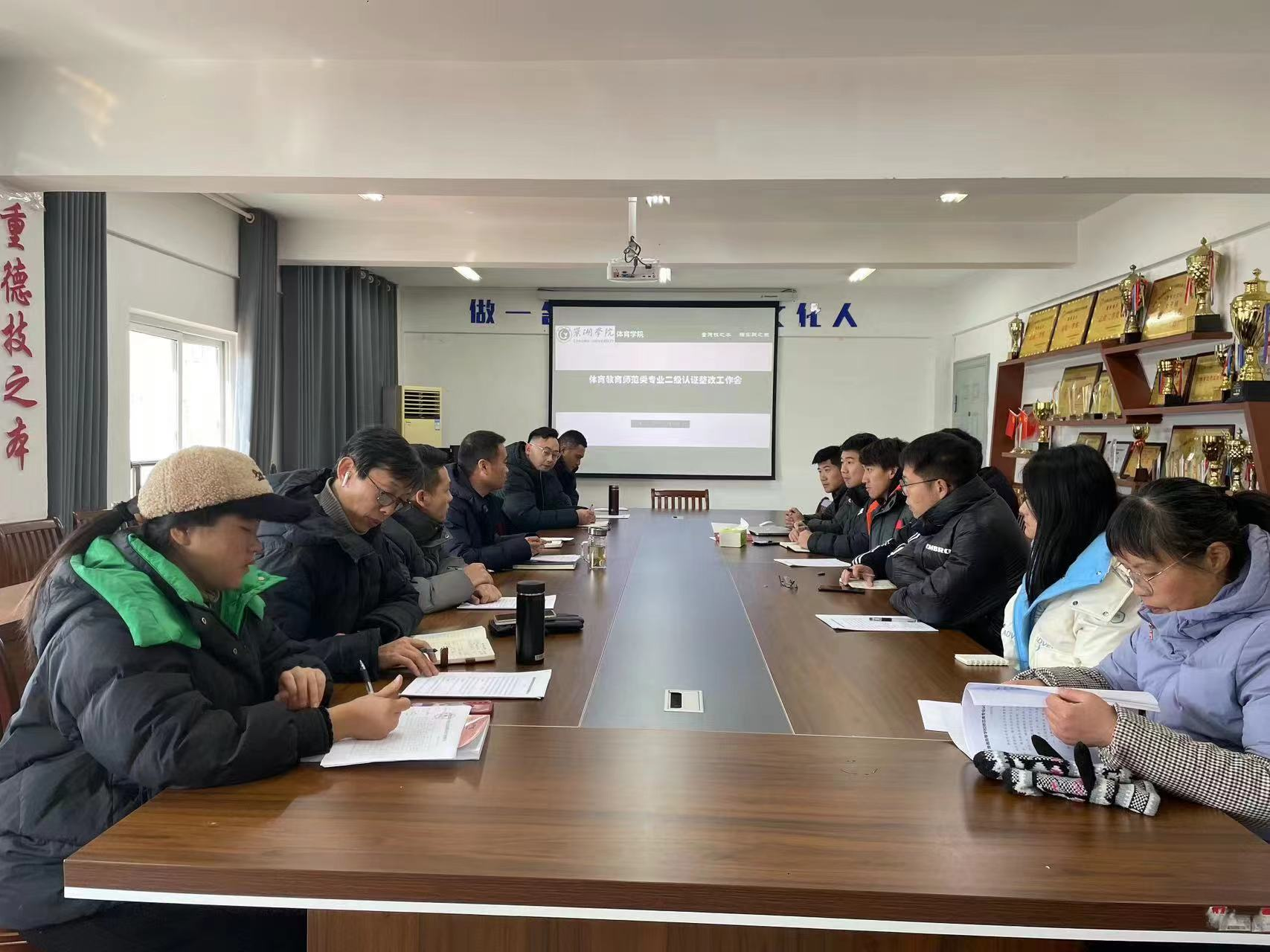 12月20日下午,体育学院召开体育教育师范类专业二级认证整改工作会议。体育学院副院长杨叶红、体育学院教学督导王成绩、倪再谢以及体育教育专业全体教师参加会议。会议由杨叶红主持。