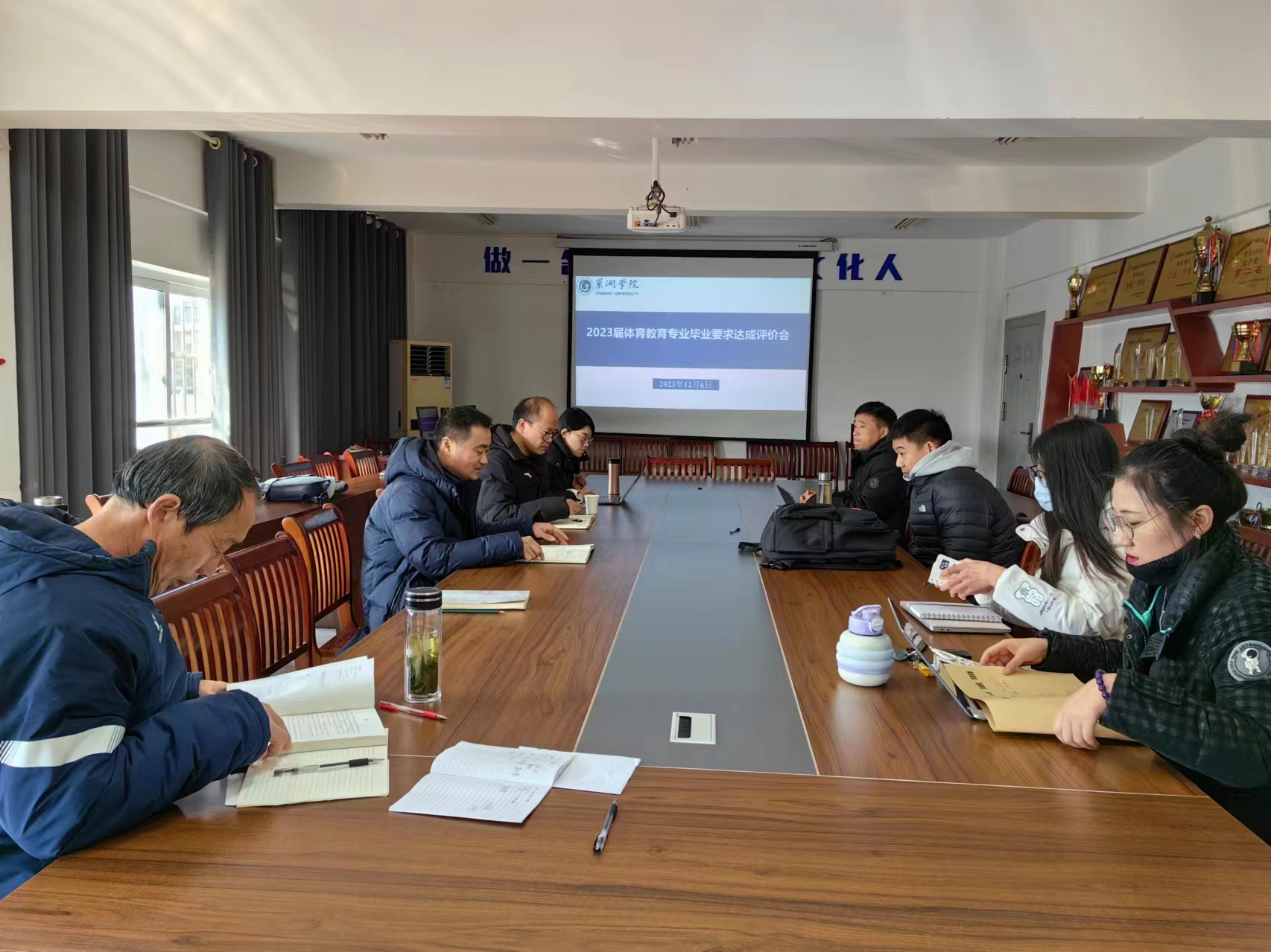 为推进体育专业认证的持续整改,12月6日,体育学院在会议室召开了2023届体育教育专业毕业要求达成评价会。体育学院党委书记宋明友、体育学院副院长杨叶红以及体育学院教学指导委员会成员参加会议。会议由杨叶红主持。