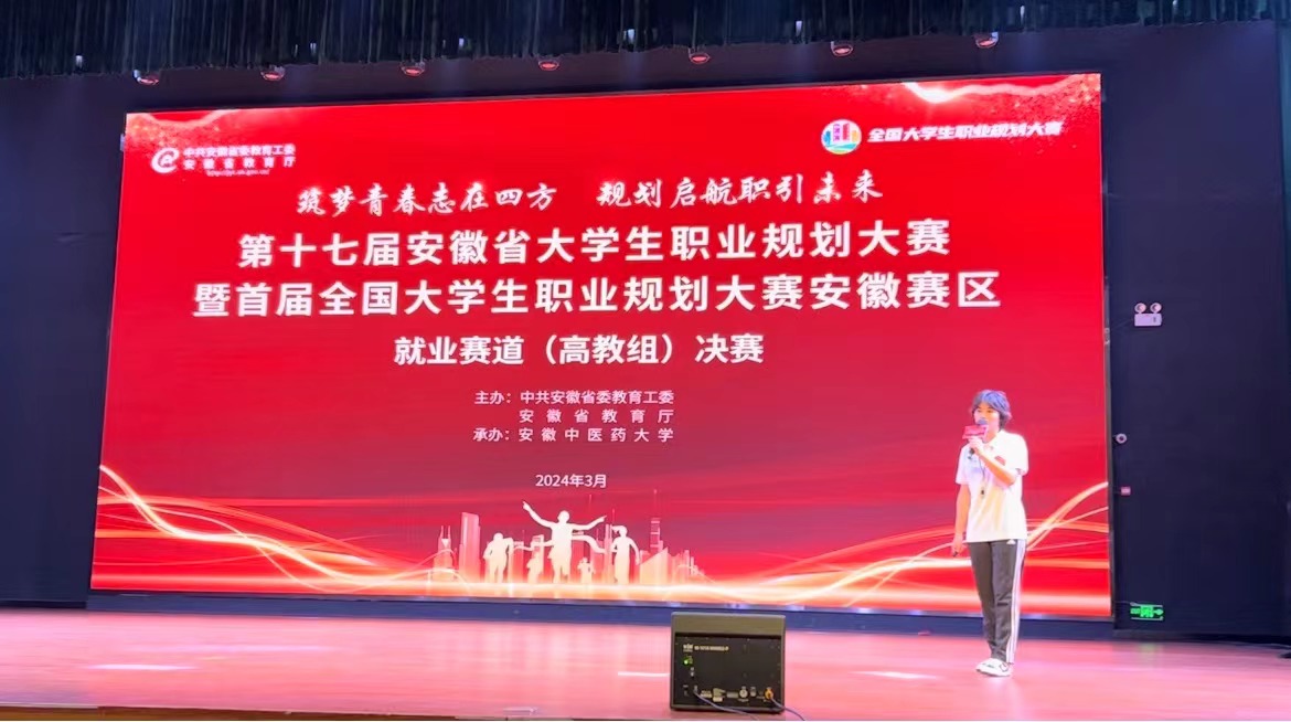 3月13日至14日,由安徽省教育厅主办的第十七届全省大学生职业规划大赛暨首届全国大学生职业规划大赛安徽选拔赛总决赛在合肥落下帷幕。经过激烈角逐,体育学院周慧辰同学《“青春献给跑道 爱心守护成长”——做一名中学体育教师》荣获就业赛道二等奖,这是学院在该项赛事上取得的最好成绩。