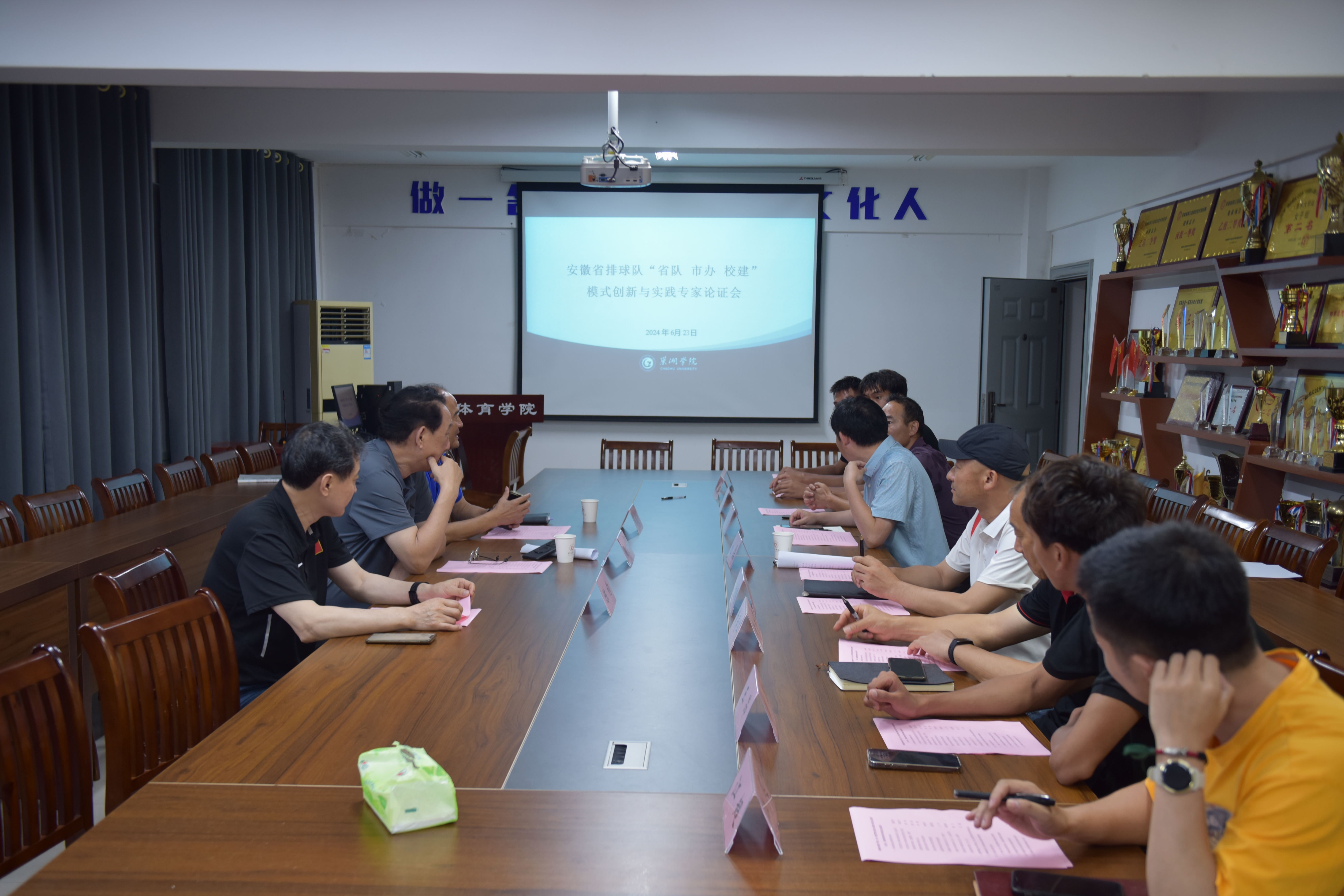 为深入探讨“省队 市办 校建”模式的创新与实践,进一步培养高水平排球运动人才,6月23日,体育学院于会议室举办安徽省排球队“省队 市办 校建”模式创新与实践专家论证会,会议由体育学院院长赵胜国主持,中国排协沙滩排球教练委员会委员盛惠华、中国排协沙滩排球裁判委员会委员翟成竹、首都体育学院二级教授、博导陈钧、必赢76net官网科研处处长姚磊、体育学院副院长钟翔、体育学院教授黄寿军、樊贤进出席,安徽省沙滩排球队队员王昂、陆思錞、陈义、张睿琦、郉孔权参会。