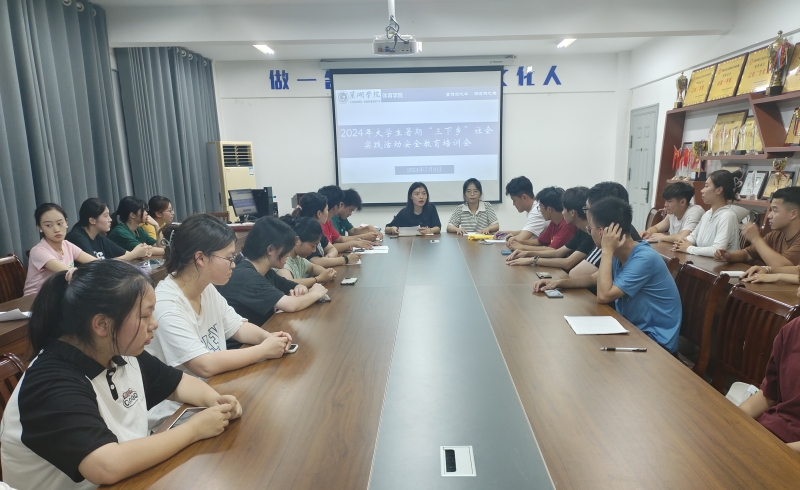7月9日晚,体育学院在学院会议室组织召开2024年大学生暑期“三下乡”社会实践活动安全教育培训会,团队指导老师宋玉荃、校院两级社会实践团全体成员参加会议,会议由学院团委副书记杜锐主持。