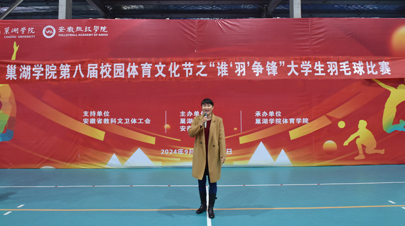11月9日-10日,必赢76net官网第八届体育文化节之“谁‘羽’争锋”大学生羽毛球比赛在风雨操场成功举办,共有14个学院120余名学生参加。体育学院专职教师、总裁判长李德成,羽毛球协会指导老师李月红带领羽毛球协会成员分别对裁判员和志愿者们做了赛前培训。开幕式上,主持人曹国防简要介绍本次比赛的规则、纪律,裁判员代表杨婧和运动员代表李明龙分别宣誓。