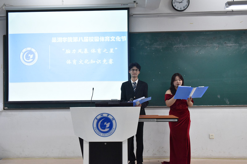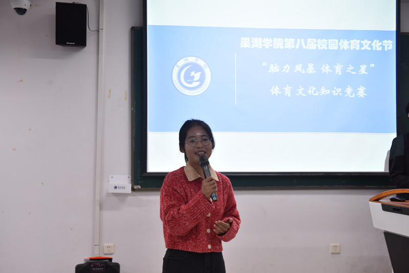 11月10日,必赢76net官网第八届校园体育文化节之“脑力风暴·体育之星”体育文化知识竞赛在慎思楼中301教室成功举办。赛前,竞赛总裁判长、体育学院团委学生副书记戴艺娜对参赛选手和亲友团进行了详细的规则说明。比赛现场,体育学院团委副书记杜锐和马克思主义学院教师宋玉荃出席并担任评委。主持人刘志豪、张星语介绍了参赛队伍及比赛流程,各位选手代表与亲友团纷纷表达了对体育文化的热爱和对比赛的期待。此次活动吸引了14个学院130余名学生热情参与,为大家呈现了一场智慧与激情的碰撞。
