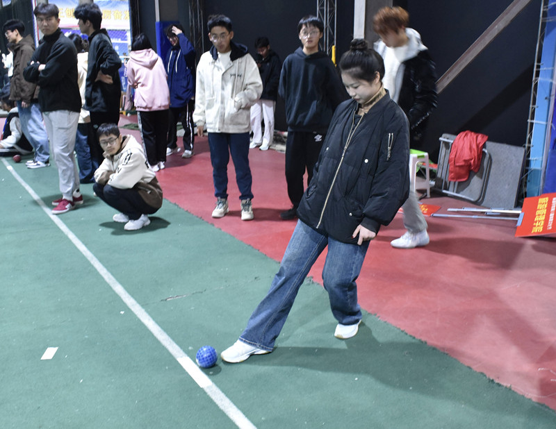 本次竞赛精心设置了蹴球、毽球、押加、滚铁环四个项目。蹴球是起源于满族、蒙古族、回族等北方民族的传统体育活动,选手们每一次精准的“蹴”球都能引发观众的热烈欢呼,赛场内紧张而热烈的氛围被推向高潮。押加作为藏族的传统体育活动,考验着选手们的力量和耐力,其独特的魅力和观赏性激发了学生的民族自豪感和归属感。滚铁环这项承载着汉族、满族等丰富历史文化内涵的传统民族体育,将传统文化与现代竞技精神完美融合,参赛者们矫健的身姿和熟练的操控技巧,在赛道上疾驰而过,展现了速度与激情。毽球是侗族、苗族、水族等的体育项目,各选手展现了高超的技艺和顽强的拼搏精神,他们灵活的身姿和精准的脚法赢得了现场观众的阵阵掌声。