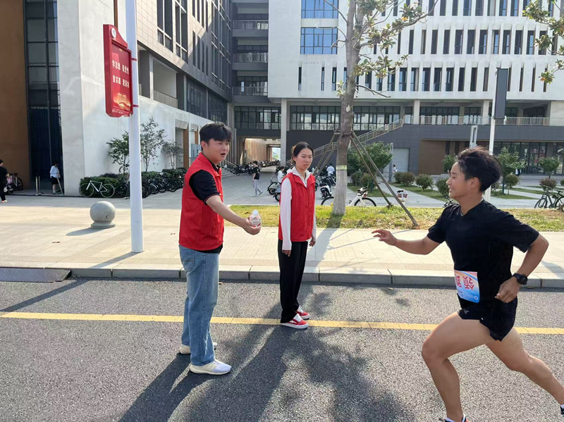 为确保活动顺利进行,学生党支部提前一周启动筹备工作,制定详细服务方案。党员志愿者分为综合协调、物资保障、赛道引导三个小组,分别负责活动现场统筹、参赛物品发放及路线指引。在开幕式现场,党员们身着红色马甲,协助完成人员引导、道具搬运等工作,确保每个环节衔接顺畅。迷你马拉松和职工健步走期间,志愿者们分布在校园内各个补给点,为参赛师生提供饮水补给、赛程指引和安全提醒。